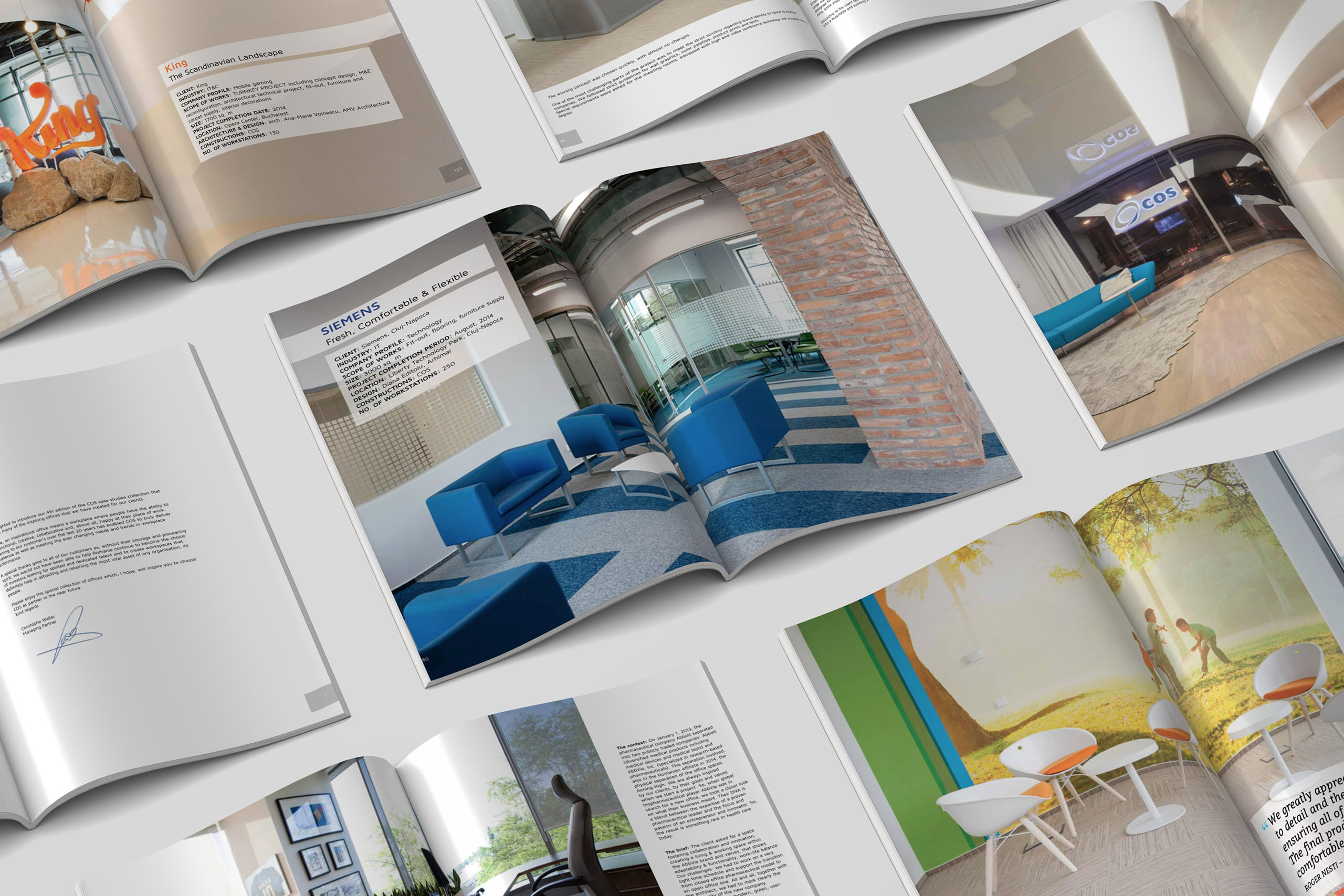 The result was a refined, high-quality showcase catalogue that positioned COS as a mature, design-driven organization capable of delivering complex corporate environments. The printed edition became both a sales tool and a brand statement, reinforcing credibility in client meetings and presentations.